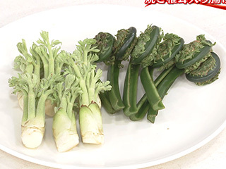 グリーンアスパラガスや、たらの芽・こごみなどの山菜を揚げて添えて、召し上がれ!