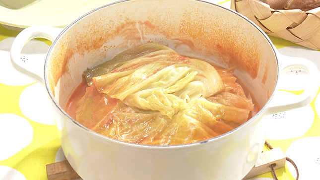 ロールキャベツを1個ずつ巻く手間がなく、食べごたえも満点。鍋ごと食卓に出すのもおすすめです