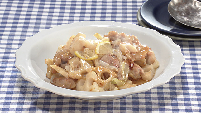 シャキッとした歯ざわりと甘みが酢鶏によく合うので、ぜひれんこんを具材に加えてください!