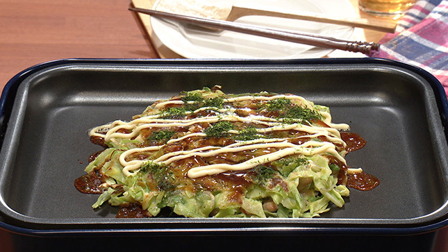 お好み焼きは手軽に野菜もたんぱく質もとれるので、ひとり分ごはんにぴったりです