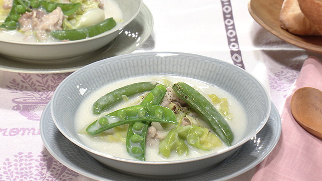 材料を順に加えて煮れば完成の、お手軽なシチュー。春野菜の甘みを味わってください!