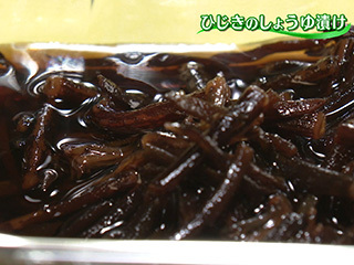 材料・作り方(作りやすい分量) ① 長ひじき10gは上記の「ひじきと豚バラ肉の炒め煮」の作り方(1)と同様にもどして切る。 ② 沸騰した湯に(1)を入れてひと煮立ちさせ、1分ほどゆでる。ザルに上げて水気をしっかりときってペーパータオルでふき、保存容器に入れる。 ③ 小鍋にしょうゆ大さじ2、酒、みりん各大さじ1、水1/4カップを入れてひと煮立ちさせ、(2)にまわし入れ、冷ます。冷蔵で4日ほど保存可能。 ひじきは1回では使いきれないので、残ったものはしょうゆ漬けにしておくと、常備菜としてごはんのおともになります。卵焼きの具やサラダ、あえものなどにも応用できます。