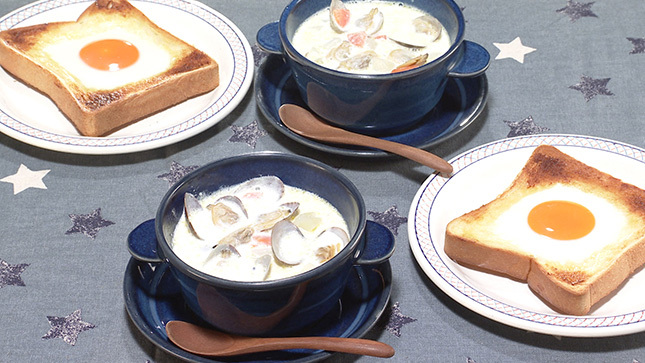 うまみが出たあさりの蒸し汁はとりおき、水といっしょに炒めた野菜に加えてください