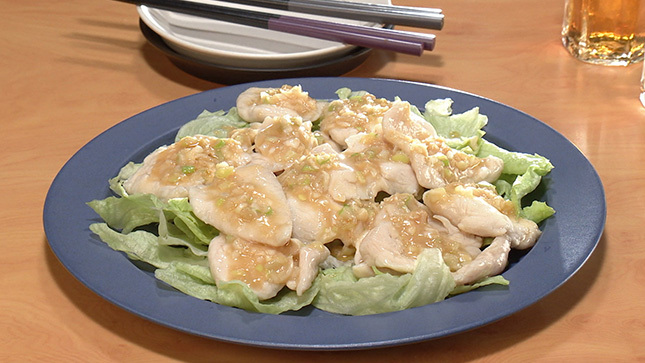 鶏肉に片栗粉をまぶしてからゆでて、氷水にとることでツルリとした食感に仕上がります