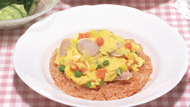 ケチャップライスは炒めずに電子レンジで作ると、油の量が控えられてヘルシーに仕上がります