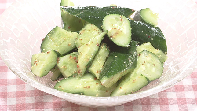 きゅうりはめん棒などでたたいて、ひびを入れてから乱切りにすると、味のなじみがよくなります