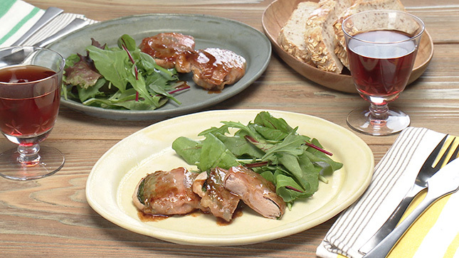 豚ヒレ肉にバジルの葉をのせたら、生ハムを密着させるように巻きましょう