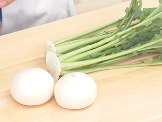 この時季に出回るかぶはやわらかくてジューシー。皮つきでもおいしく食べられ、葉もやわらかくビタミンなどの栄養が豊富に含まれているので、一緒に使って食べきります。電子レンジにかけて軽くしんなりとさせると食べやすくなります。