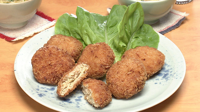 材料・作り方(2人分) ① 鍋にオリーブ油大さじ1/2、玉ねぎの薄切り1/2個分(100g)を入れて火にかけ、薄いきつね色になるまで4~5分炒める。途中で焦げそうになったら弱火にする。 ② 水1+1/2カップ、洋風スープの素小さじ1/2、塩小さじ1/4、こしょう少々、衣に使ったパン粉の残り(約大さじ3)を加え、火を強めてひと煮立ちさせる。溶き卵1/2個分をまわし入れ、ふんわりと火を通す。 ③ 器に盛り、粉チーズ小さじ1をふり、あればパセリのみじん切り少々を散らす。 鶏メンチに使った溶き卵とパン粉の残りは、捨てずにスープに利用しましょう。パン粉がスープを吸ってとろみがつき、食べごたえも出ます。