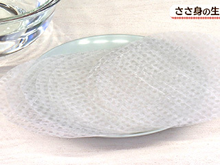 鶏ささ身は電子レンジで火を通した後、蒸し汁に浸けたまま粗熱をとると、しっとりとします