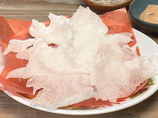材料・作り方(作りやすい分量) たっぷりの油は200℃に熱し、生春巻きの皮1枚を手で割りながら入れ、さっと揚げて塩少々をふる。またはニョクチャム、マヨ豆板醤(各上記参照)をつけてもおいしい。 皮は割れてしまったり賞味期限が近づいてきたら、素揚げにするとサクサクのチップスになります。揚げものをしたあとなどに作って食べきりましょう。ぷっくりとふくらむので1枚でもかなりの量に。