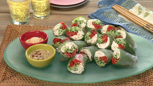 生春巻きの皮は、後で野菜の水分でやわらかくなるので、少し固めに戻して巻くのがポイント