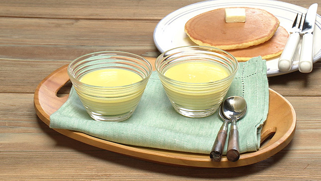 「とうもろこしのポタージュ」の作り方(4)でこしたあとに残る繊維には、とうもろこしの甘みやうまみが残っているので、パンケーキに入れて味わいます。とうもろこしの甘みがあるので砂糖は控えめに。焼き上がるととうもろこしの香りが広がります。(本日のもう一品を参照)