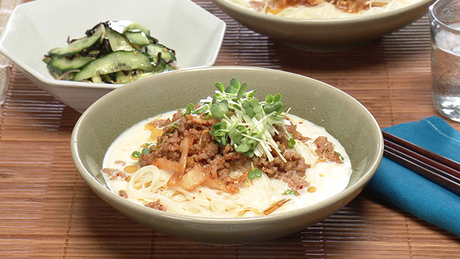 ゆでたそうめんは流水でもみ洗いしてから氷水で冷やし、水気をしっかりと押し絞りましょう