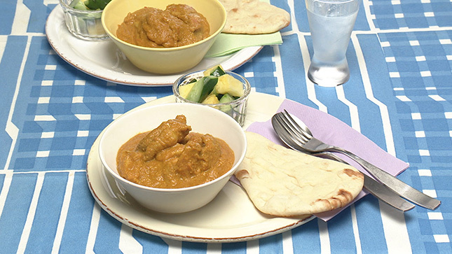ヨーグルトやカシューナッツも加えたソースを作ることで、短時間でも本格的なカレーに仕上がります