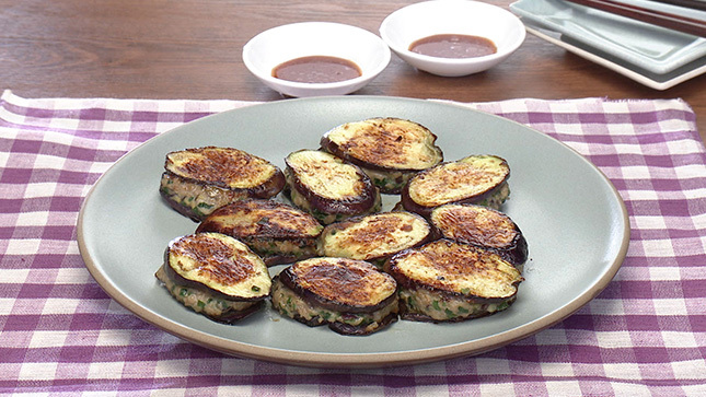 斜め輪切りにして残った部分のなすは、みじん切りにしてあんに混ぜて使いきってください