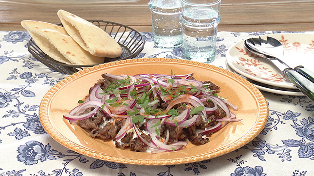 ピタパンなど、パンにはさんで食べるのもおすすめです。ヨーグルトソースをかけて召し上がれ!