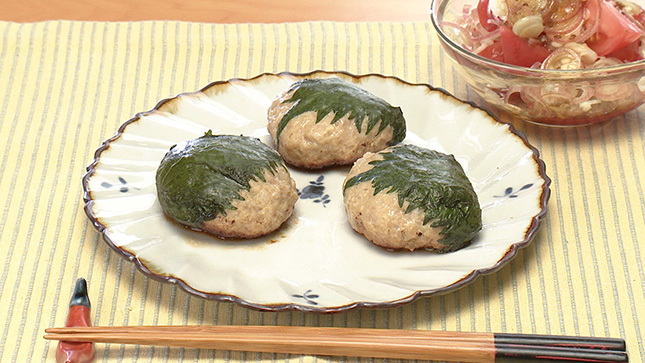 青じそがはがれないように、つくねは返さないで蒸し焼きにして、火を通しましょう