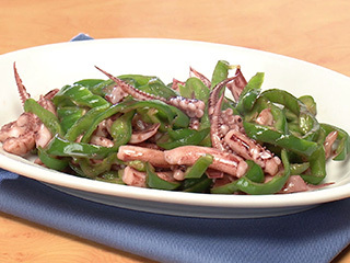 材料・作り方(2人分) ① するめいかの足1~2はい分は、目とともにワタを切り落とし、クチバシを除いてよく洗う。足先を少し切り落とし、1本ずつに分け、食べやすい長さに切る。するめいかのエンペラ1~2はい分は縦1㎝幅に切る。 ② ピーマン2個(70g)は縦半分に切ってヘタと種を除き、斜め5㎜幅に切る。 ③ フライパンにバター10gを入れて火にかけ、半分溶けたら、(1)、(2)を入れてピーマンがしんなりとするまで炒める。しょうゆ小さじ1/2、塩、こしょう各少々を加えて炒め合わせる。 するめいかの足とエンペラは、鮮度がよいうちに炒めものにするとやわらかくおいしく食べられます。
