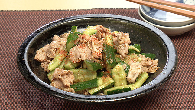 きゅうりはたたいてひびを入れ、手で一口大に割ることで味がからみやすく、食感もよくなります