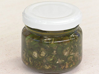 余った青唐辛子はオイル漬けにするのがおすすめ。炒めものやスープ、焼いた肉や魚にかけてもおいしいです