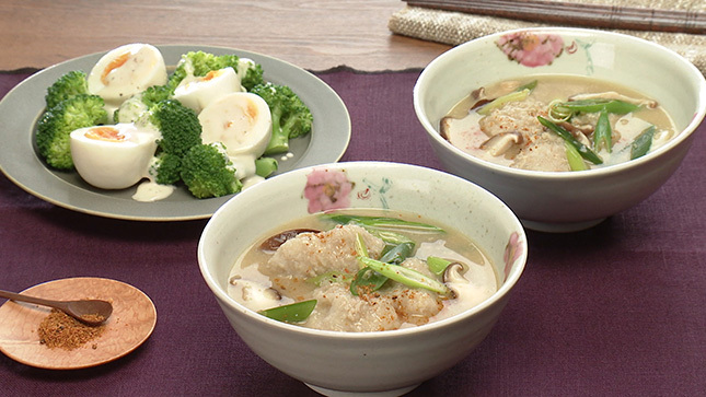 れんこんを加えることで、もちっとした食感の鶏だんごになります。ぜひお試しください!