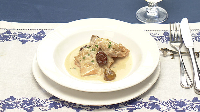 “白い煮込み”と呼ばれるフランス料理です。食材の焼き色が濃くならないように注意しましょう