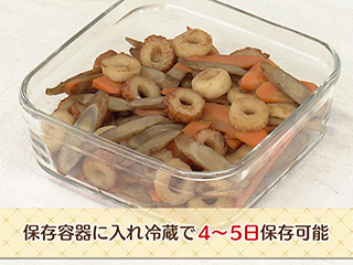 残りのきんぴらは保存容器に入れ、冷蔵で4~5日保存可能。
