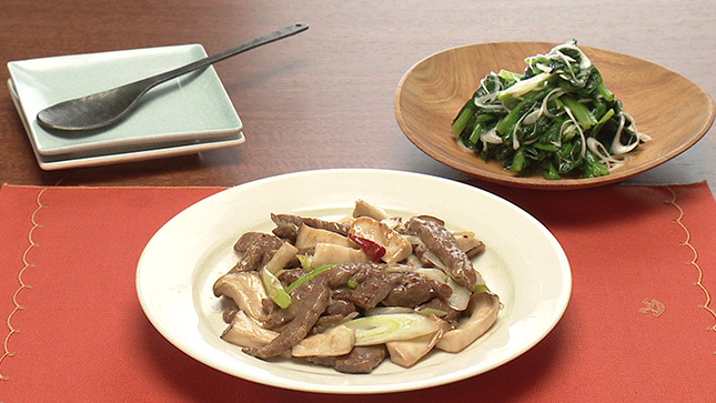 牛肉は焼く直前に片栗粉をまぶし、エリンギは包丁を使わずに手で裂くのがポイント