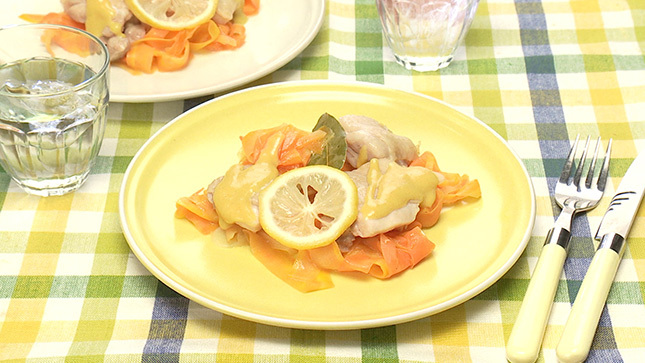 鶏肉とひらひらにんじんの重ね蒸し