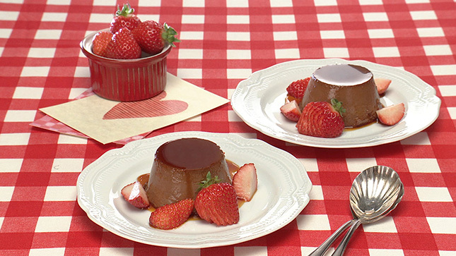 プリン生地はカップに流す前に、ザルでこすのがポイント。口当たりがなめらかに仕上がります