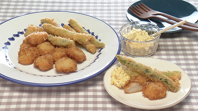帆立とアスパラのフライ マスタードタルタル