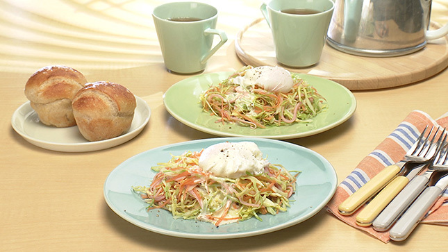 春野菜のコールスロー ポーチドエッグのせ