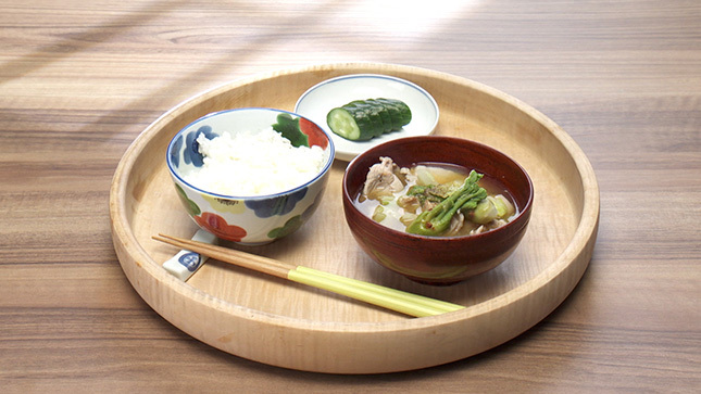 夏はトマトやピーマン、秋はきのこ、冬は根菜など、野菜を変えて豚汁を楽しんでみてください