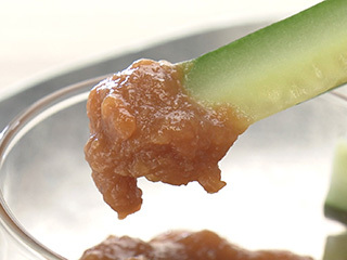 材料・作り方(作りやすい分量) ① 小鍋に「豚肉のママレードみそ焼き」のみそ床(上記参照)全量(約80g)と水大さじ1を入れ、強めの中火にかける。混ぜながら煮立て、弱火でぽってりとするまで3分ほど煮つめ、粗熱をとる。 ② 好みの野菜適量をスティック状に切って添え、つけて食べる。 味がなじんだみそ床は、水を少し加えて煮つめてディップにします。生の豚肉を漬けているので、ぬぐったらできるだけ早く作り、よく火を通します。柚子みそのような味わいできゅうり、大根、キャベツなどの生野菜がよく合います。