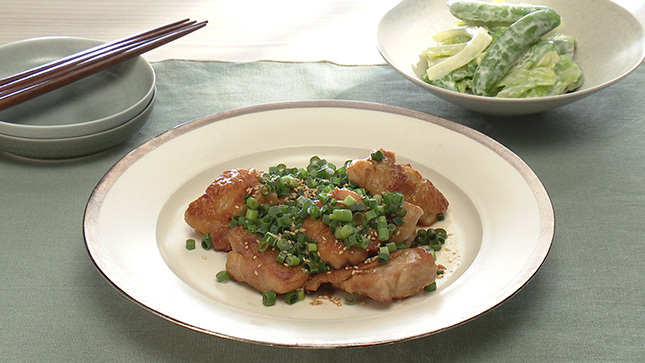 鶏肉に小麦粉をまぶしてからこんがり焼くと、漬け汁がよくからみます