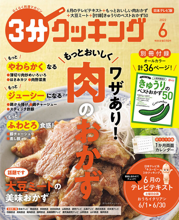 月刊誌「3分クッキング」 放送テキストのほかにも、美味しい「旬」レシピが満載です。