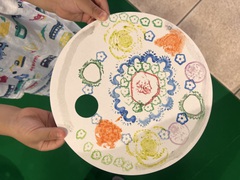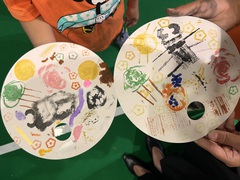 前夜、台所でスタンプ用の野菜を切りながら「楽しんでくれるかな」と少し不安になり、念のため3つ見本のうちわを作って持参したのですが、始まってみれば見本など必要なし!