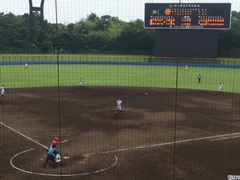 最高気温35度に達しようかという暑さの中で、選手達が練習、そして社会人との練習試合を行いました。
