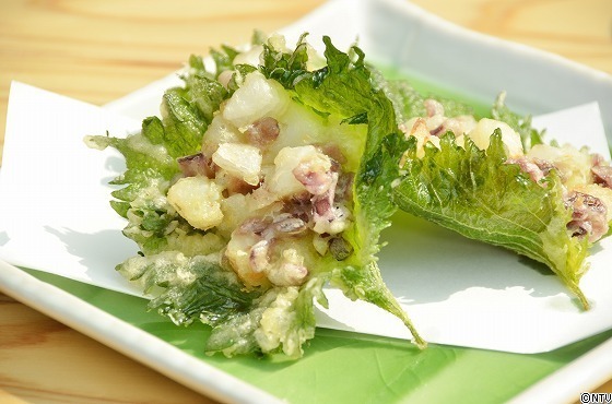 下に青シソを引くことで、更にサクサクなかき揚げの完成!