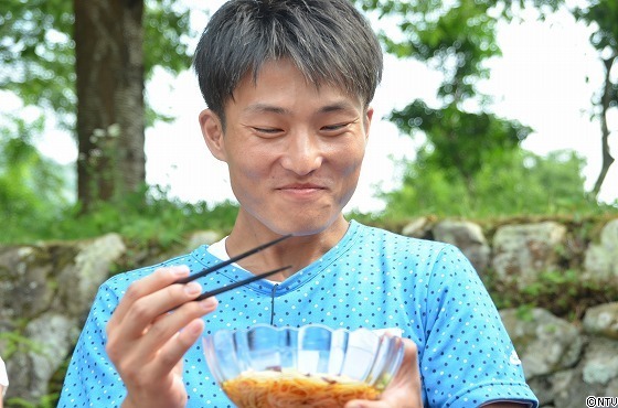 名人に出会うとさっそく胡瓜をいただきます。