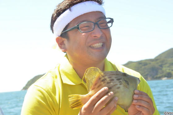念願のカワハギゲット!番組MCが先に釣り上げました。