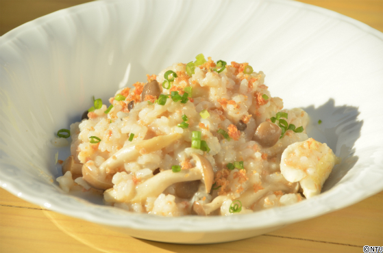 本日の乾杯料理はカワハギと乾熟明太を使ったリゾット。