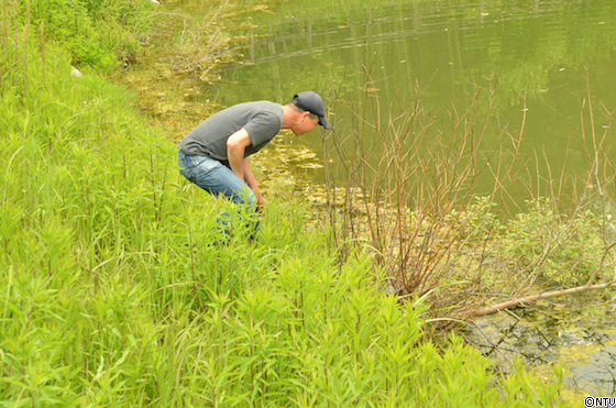 ウシガエルの鳴き声が音声に入ってしまうため、音声さんが様子を見に行く・・・
