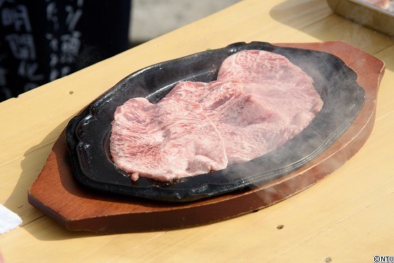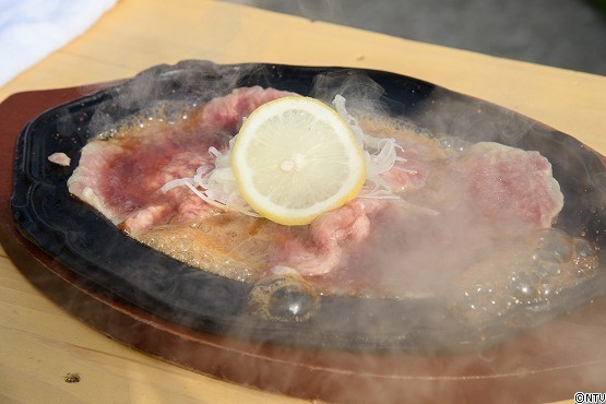 熱々の鉄板にお肉をのせて、タレをかければ完成です!