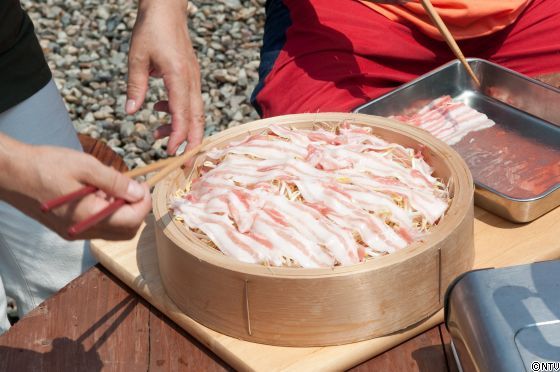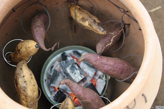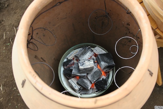 もう待ちきれない2人に用意していたのは炭が入った「壷」
