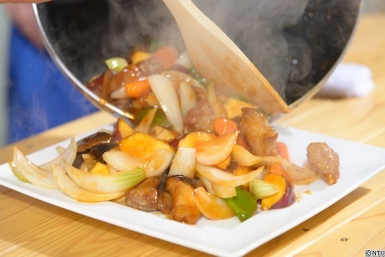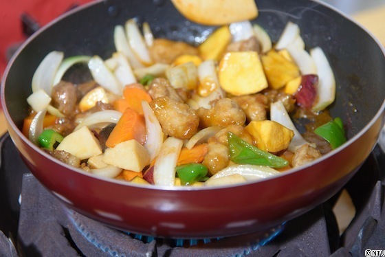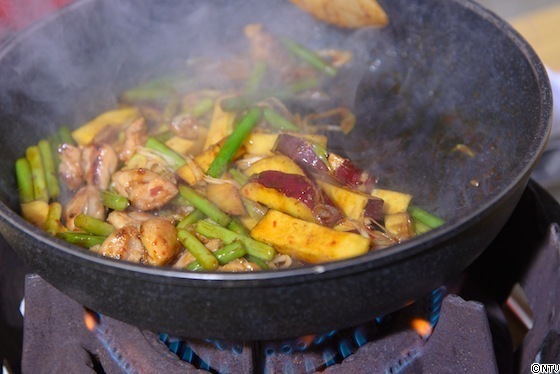 紅あずまと鶏肉、ニンニクの芽などを豆板醤のタレでサッと炒めれば完成です!