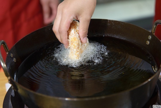 中にたっぷりチーズを入れてこんがり揚げていきます
