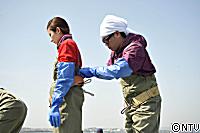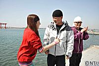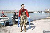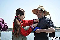 漁師さんのマイクを直してあげる心優しいベッキーちゃん。