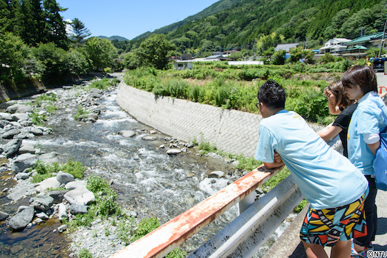料理現場に移動中、きれいな水を流れる道志川がありました。